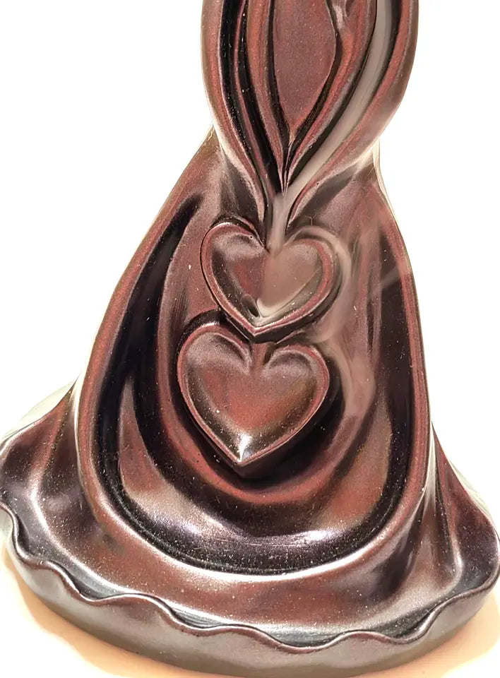 The incense holder component of the design is specifically created to accommodate incense sticks or cones. It often includes a designated holder or slot where you can securely place the incense. The design ensures that the incense remains stable while it burns, allowing the fragrant smoke to gently rise and fill the air with a romantic ambiance.