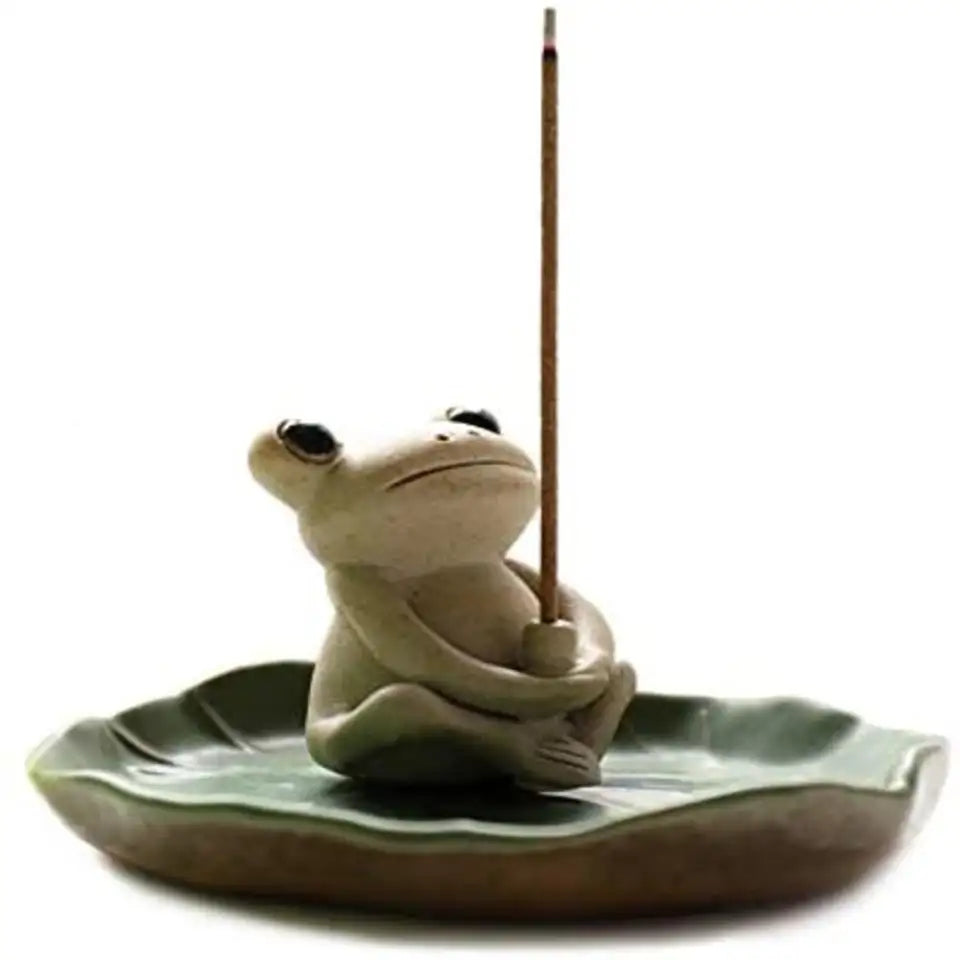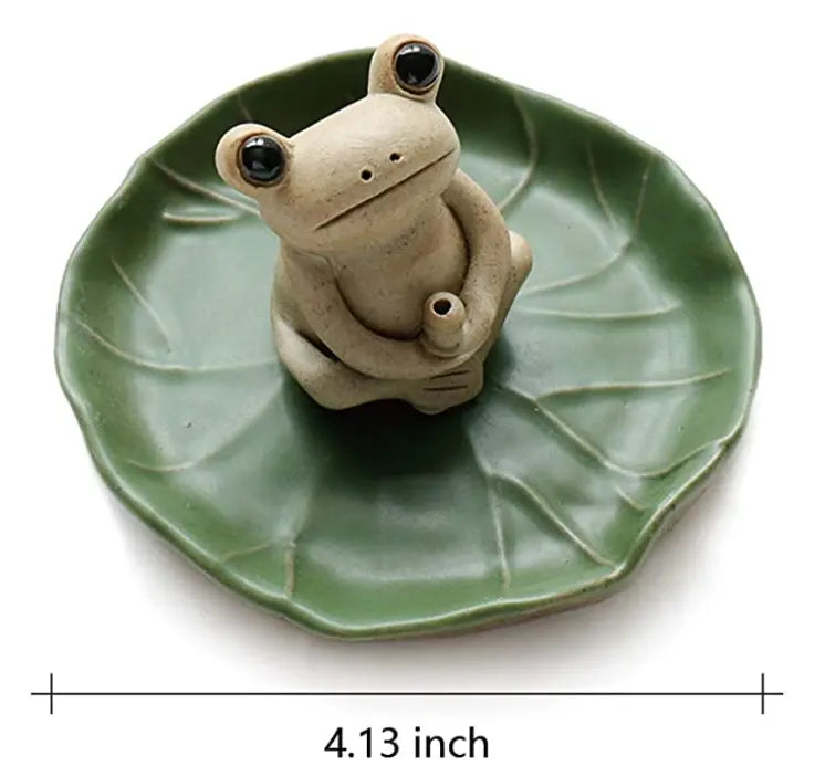 The presence of the frog and lily pad in this incense holder evokes a sense of serenity, tranquility, and connection to nature. Frogs are often associated with transformation, abundance, and good luck, while lily pads symbolize purity, growth, and harmony. The combination of these elements adds symbolic meaning to the overall aesthetic and can serve as a reminder to embrace the natural rhythms of life.