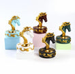 The horse head itself is a prominent focal point, characterized by lifelike proportions and exquisite craftsmanship. The details of the horse's mane, expressive eyes, and muscular contours are carefully sculpted, creating a sense of movement and vitality. The burner's size can vary, with some designs being relatively compact while others are larger and more intricate.