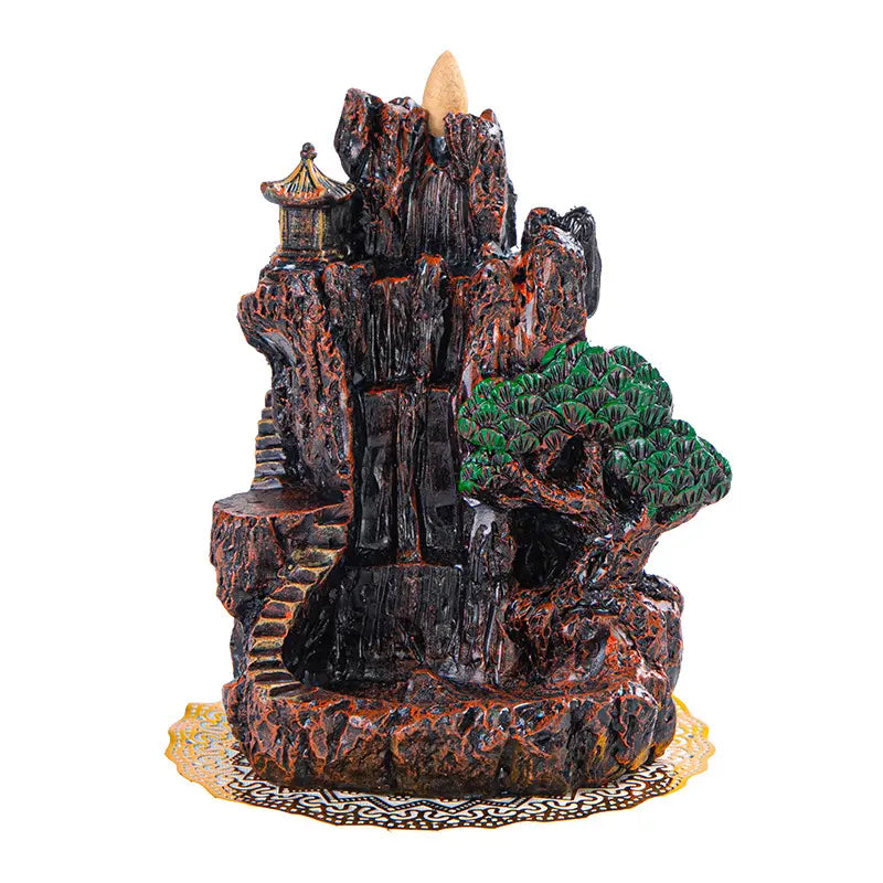 The burner is specifically designed to accommodate incense sticks or cones. It typically includes a designated holder or slot where you can securely place the incense. As the incense burns, fragrant smoke rises, and the cascading waterfall feature add a mesmerizing element, creating a serene and peaceful atmosphere reminiscent of a mountain landscape.