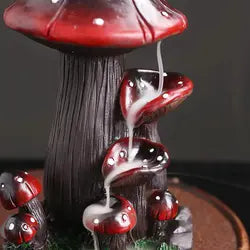 The Mushroom Incense Holder features a mushroom-shaped structure with intricate details and vibrant colors. The design often includes textured caps, a sturdy stem, and sometimes even adorable mushroom faces or decorative elements, enhancing its visual appeal.
