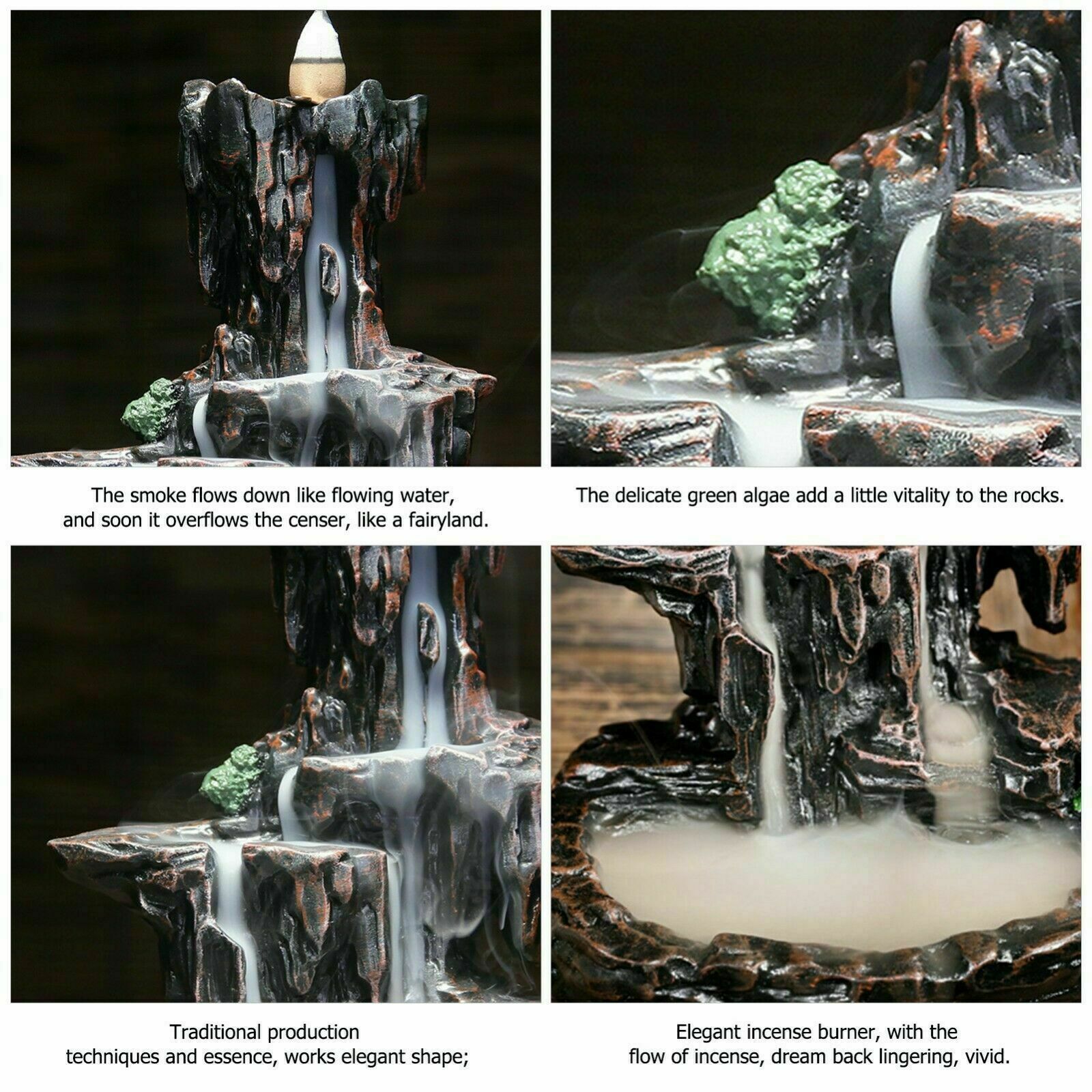 Waterfall Incense Cone Holder is made of resin material, and exquisite handmade workmanship can add to your personal style of decor. The smoke will flow evenly in the bottom if you put it in a windless environment.