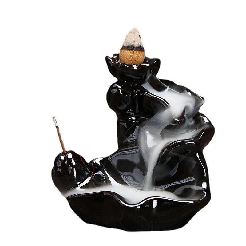 Waterfall Backflow Incense Holder is warm and comfortable and feels comfortable in your home. Insence cones burn for approximately 15 minutes, leaving a warm and inviting smell in the air.